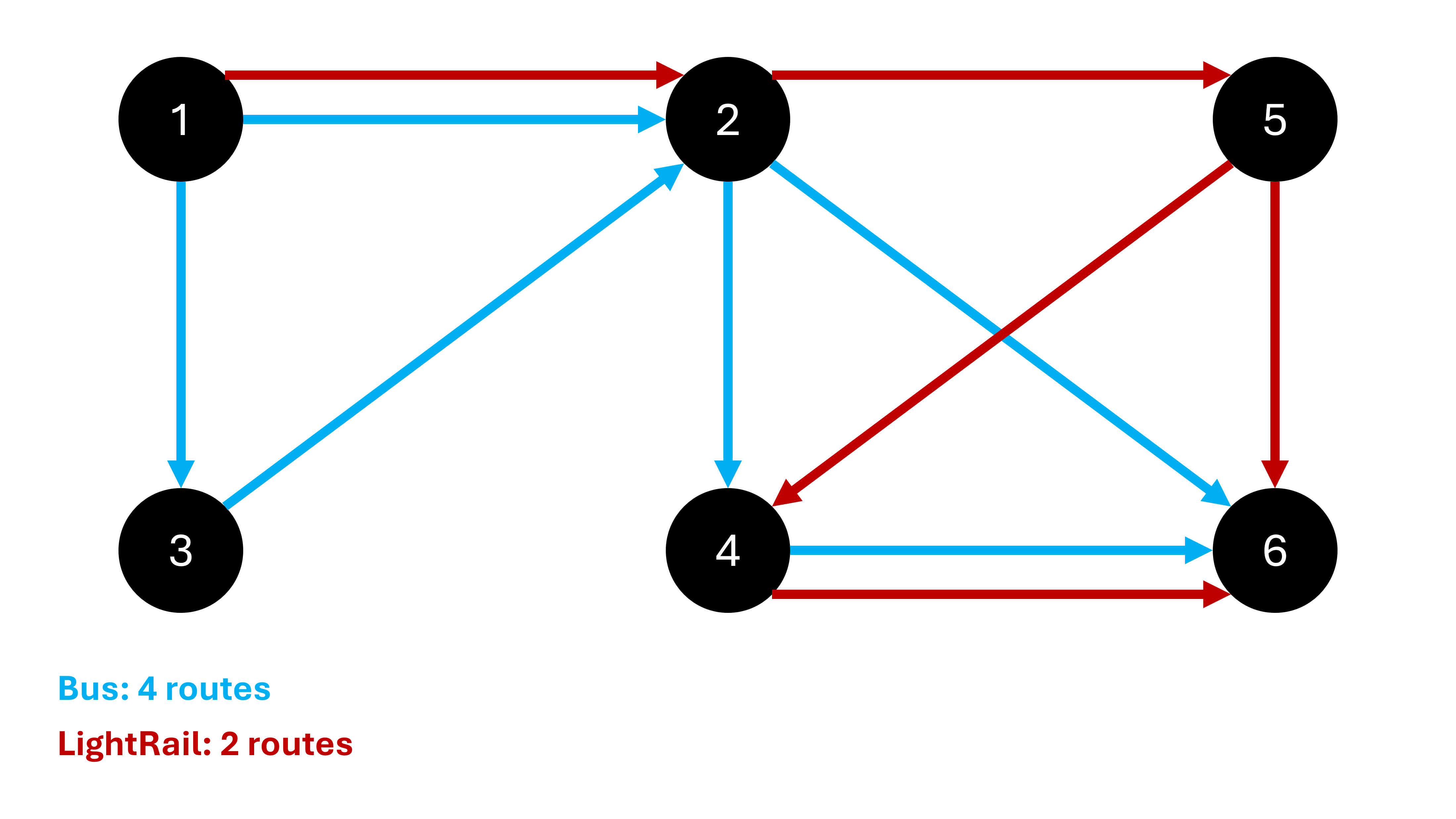 by travelling along the connections. He doesn't want to visit the same interchange more than once, and only wants to use a single form of public transport for the whole trip (i.e. only taking the